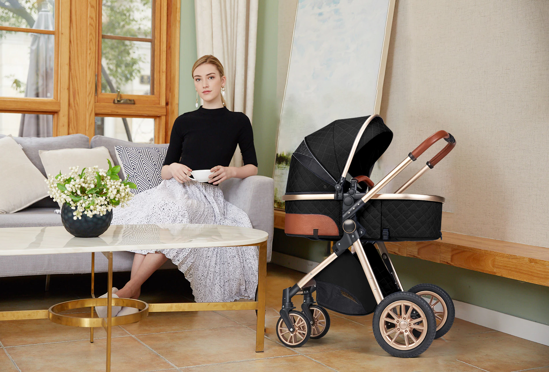 Black/Gold Premium 3-in-1 Baby Stroller (Car Seat & Base Included)